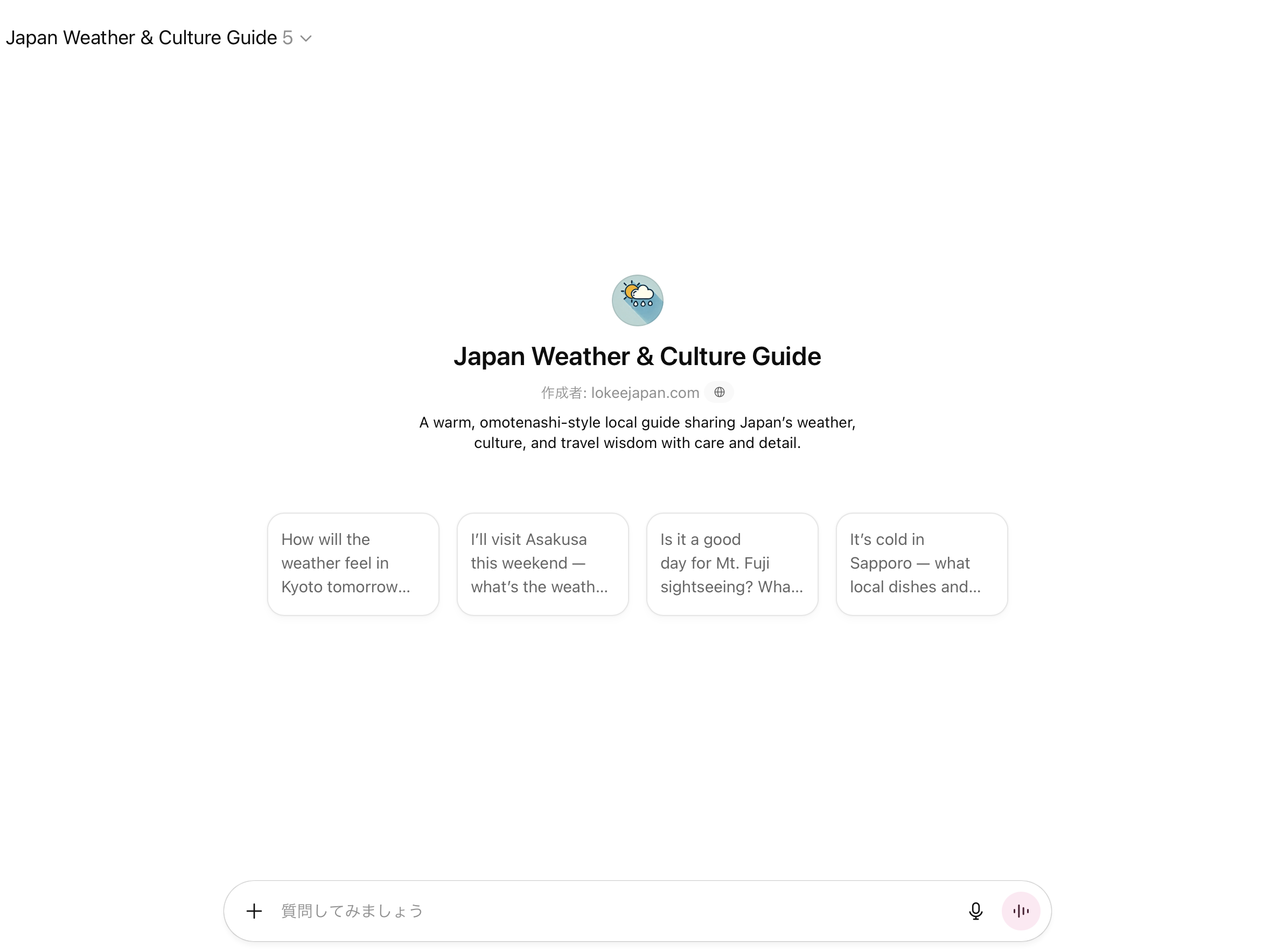 For travelers, that uncertainty can make planning tricky — which is why we created a custom GPT called LoKee’s Japan Traveler’s Weather Guide, a calm, smart companion to help you navigate Japan’s ever-changing skies.